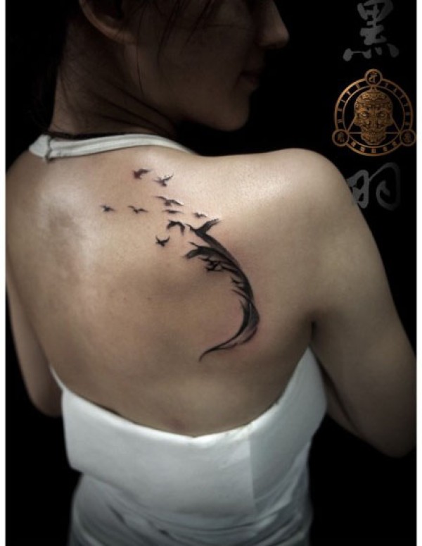 女生肩背潮流时尚的羽化燕纹身图案_女生纹身图案大全_纹身图吧