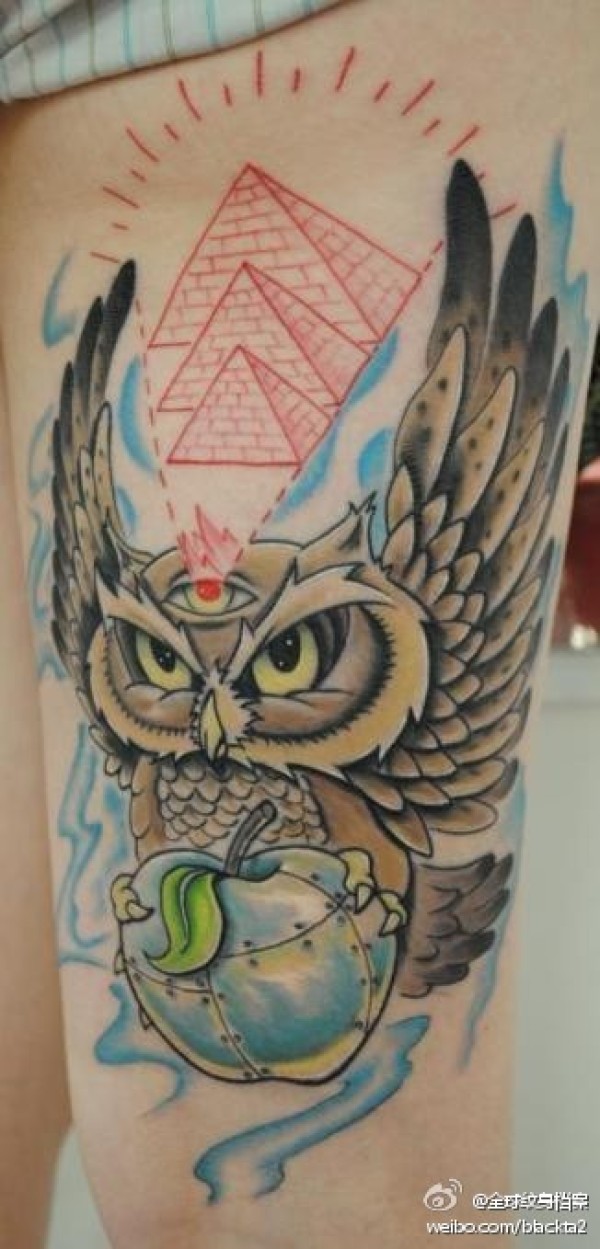 女生腿部很酷时尚的猫头鹰纹身图案_女生纹身图案大全_纹身图吧