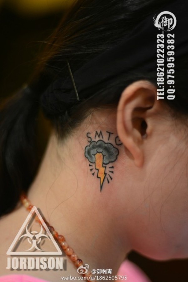 女生耳部小巧潮流的乌云闪电纹身图案_女生纹身图案大全_纹身图吧