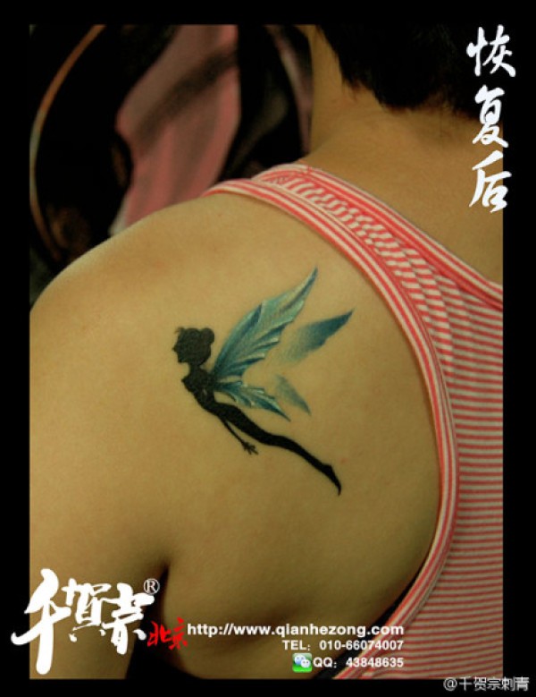 女生肩背唯美潮流的小精灵纹身图案_女生纹身图案大全_纹身图吧