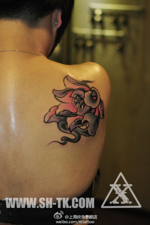 女生肩背潮流时尚的传统莲花纹身图案_女生纹身图案大全_纹身图吧