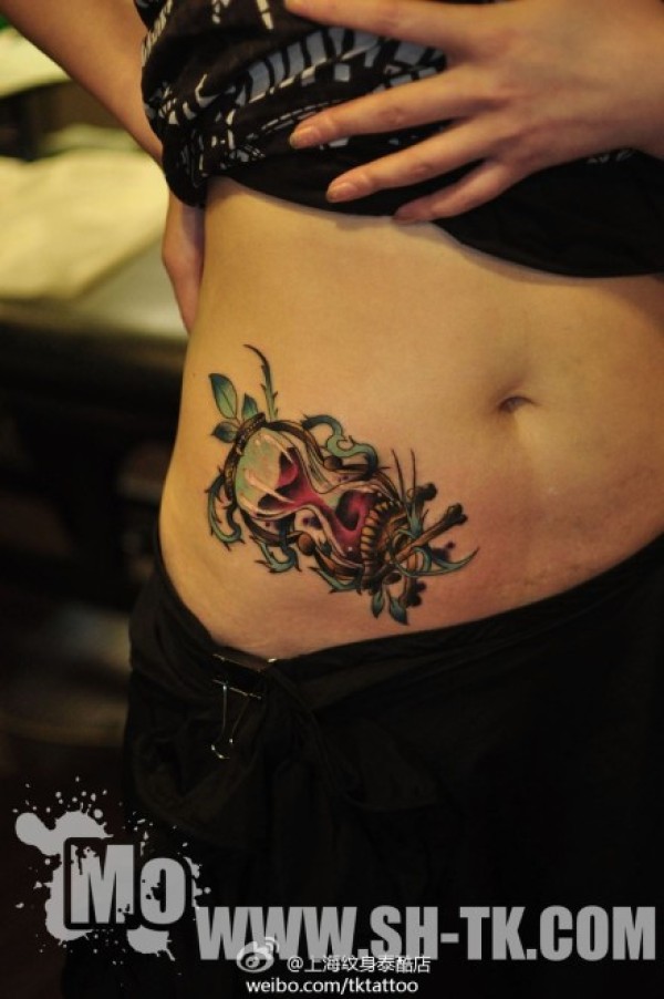 女生腹部唯美时尚的沙漏纹身图案_女生纹身图案大全_纹身图吧