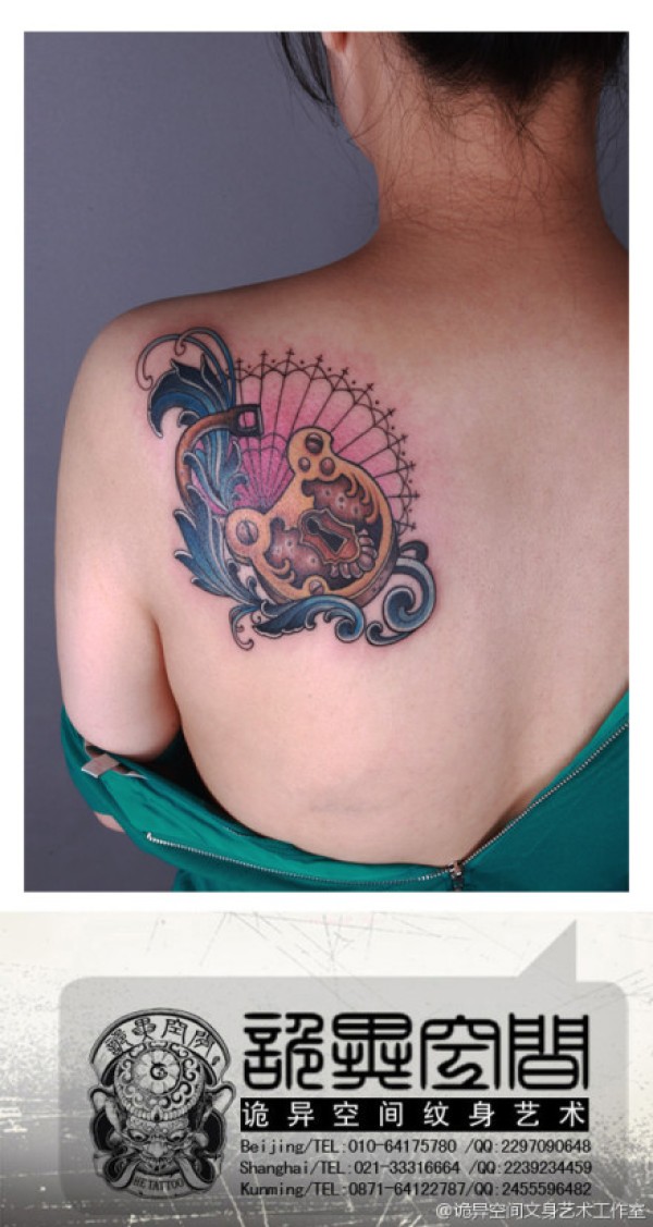 女生肩背时尚潮流的锁纹身图案_女生纹身图案大全_纹身图吧