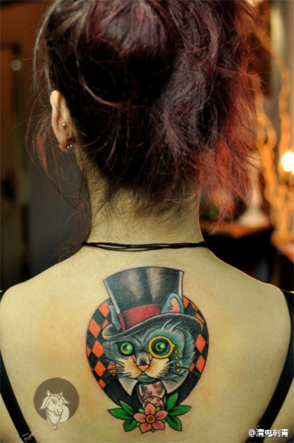 女生后背潮流时尚的猫咪先生纹身图案_女生纹身图案大全_纹身图吧