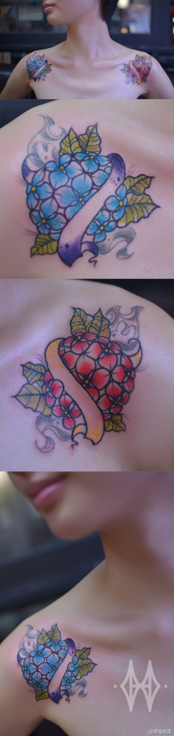 女生肩膀处经典好看的绣花球纹身图案_女生纹身图案大全_纹身图吧