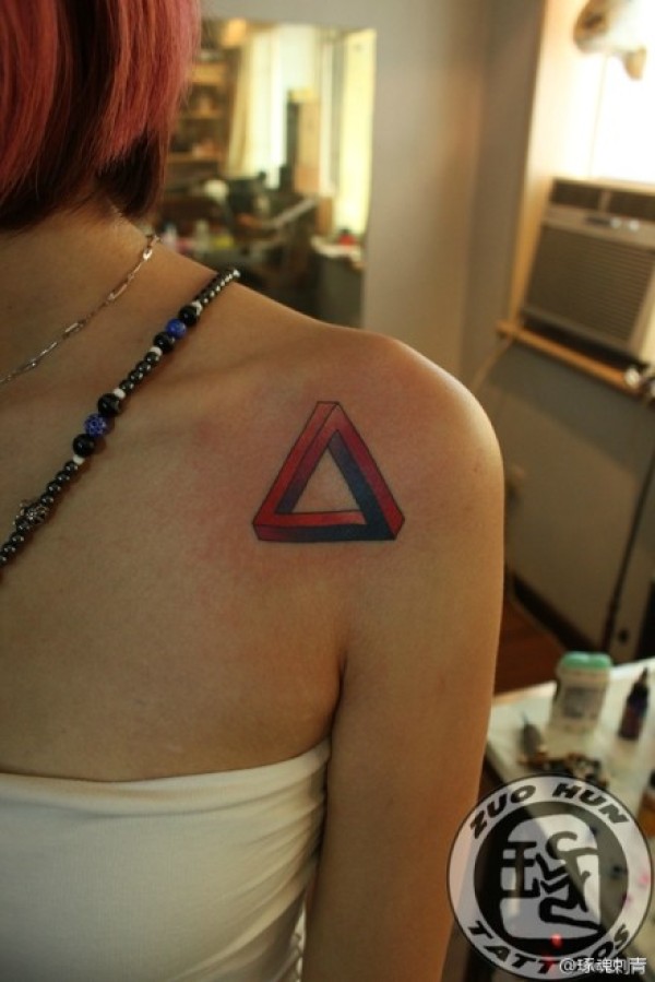 女生肩膀处经典时尚的三角纹身图案_女生纹身图案大全_纹身图吧