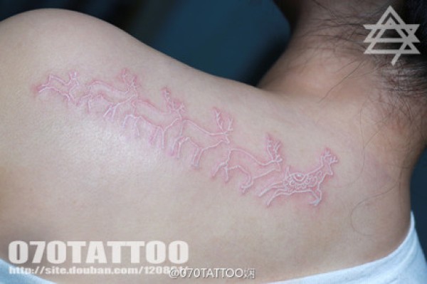 女生肩膀处小巧精美的白色纹身鹿纹身图案_女生纹身图案大全_纹身图吧