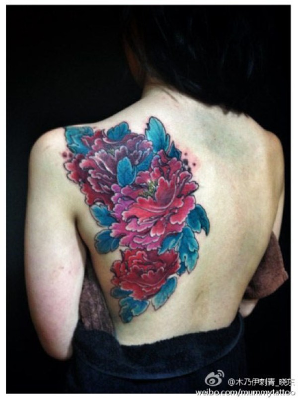 女生后背潮流漂亮的牡丹花纹身图案_女生纹身图案大全_纹身图吧