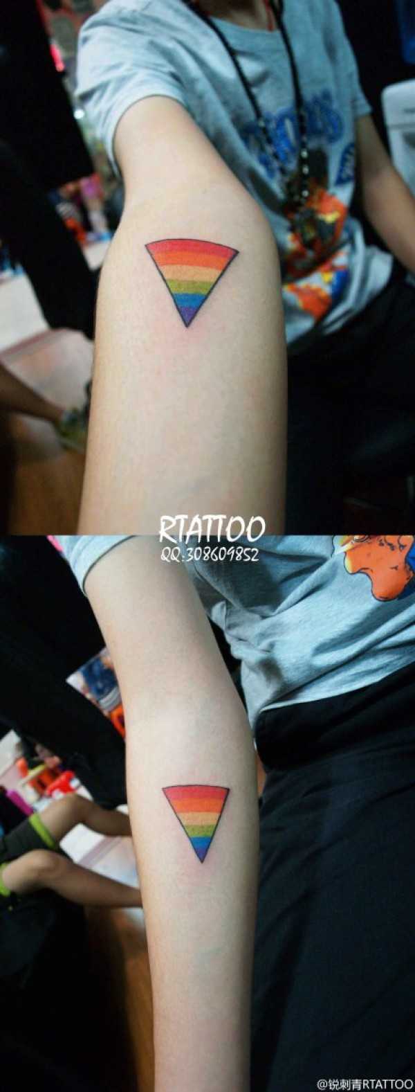 女生手臂小巧时尚的彩色三角纹身图案_女生纹身图案大全_纹身图吧