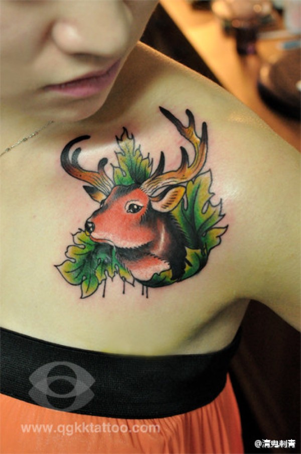 女生肩膀处经典潮流的小鹿纹身图案_女生纹身图案大全_纹身图吧