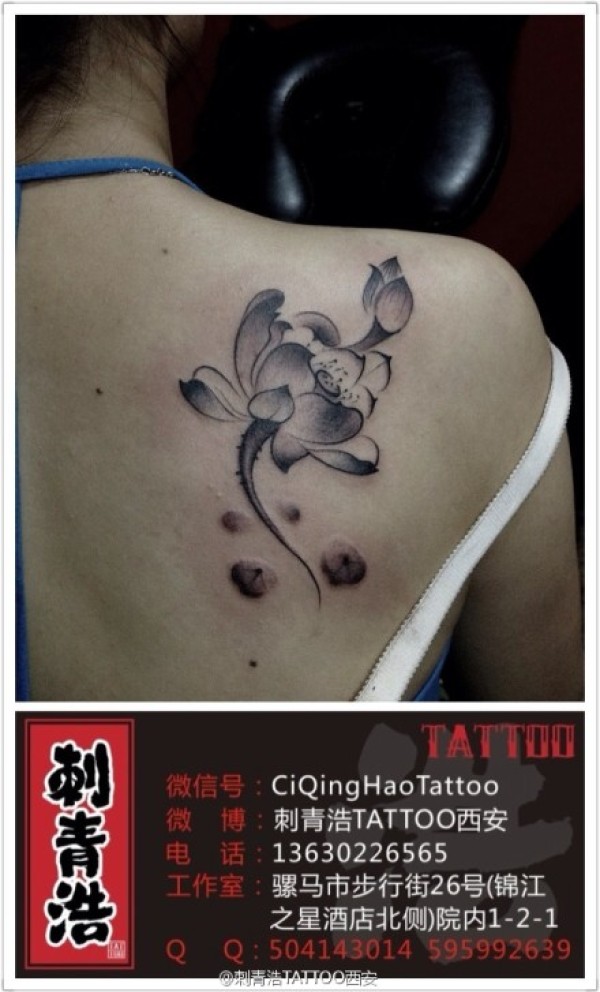 女生后肩背潮流唯美的水墨莲花纹身图案_女生纹身图案大全_纹身图吧