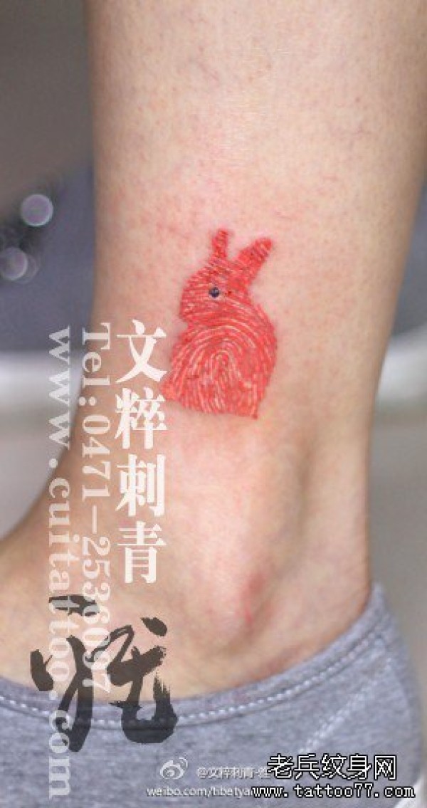 女生腿部一款小巧的指纹兔子纹身图案_女生纹身图案大全_纹身图吧