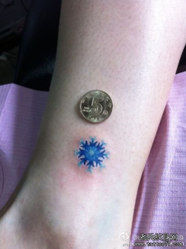 女生腿部小巧的彩色雪花纹身图案_女生纹身图案大全_纹身图吧