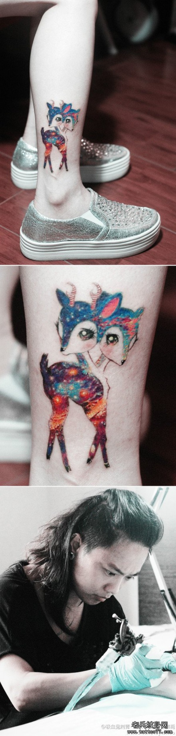 女生腿部经典时尚的星空小鹿纹身图案_女生纹身图案大全_纹身图吧
