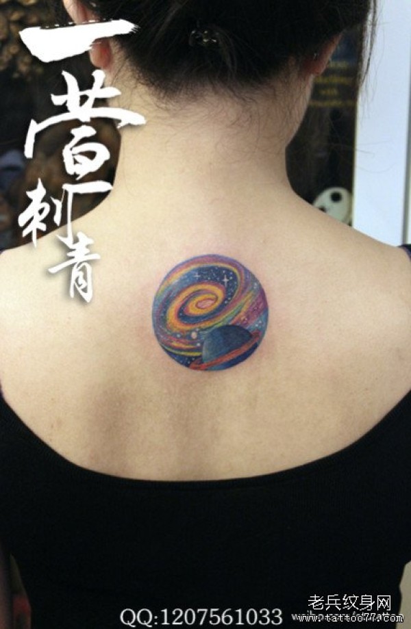 女生后背精美的彩色星空纹身图案_女生纹身图案大全_纹身图吧