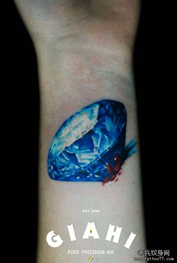 女生手腕精美时尚的彩色钻石纹身图案_女生纹身图案大全_纹身图吧