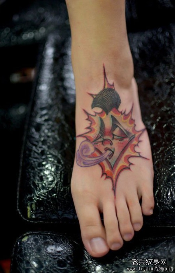 女生脚背一款嘻哈的人头纹身图案_女生纹身图案大全_纹身图吧
