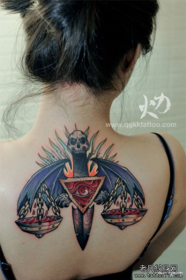 女生后背帅气潮流的天秤座纹身图案_女生纹身图案大全_纹身图吧