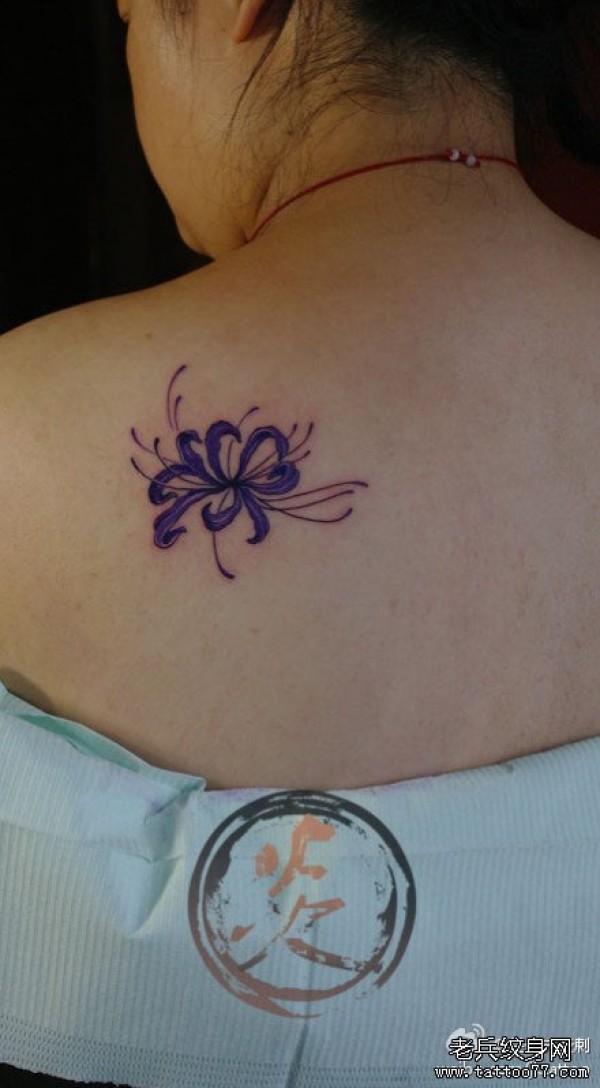 女生肩背小巧时尚的彼岸花纹身图案_女生纹身图案大全_纹身图吧