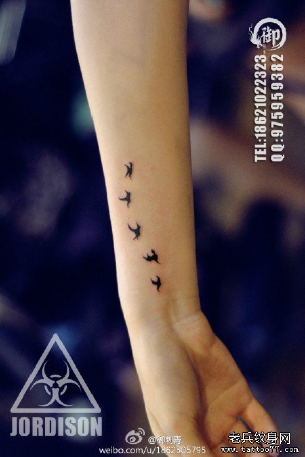 女生手臂经典潮流的大雁纹身图案_女生纹身图案大全_纹身图吧