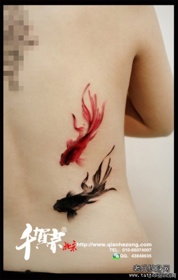 女生后背小巧潮流的水墨小金鱼纹身图案_女生纹身图案大全_纹身图吧