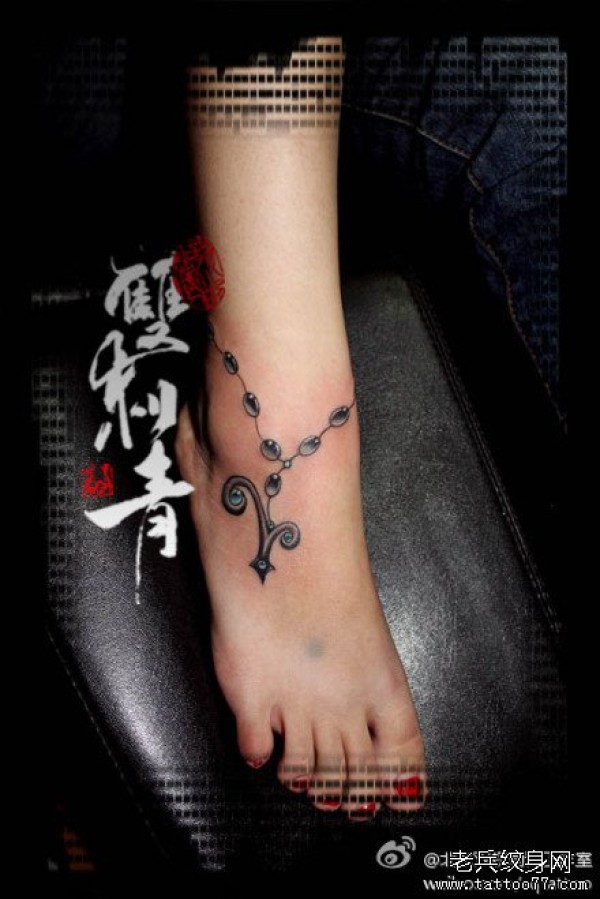 女生脚腕精美的星座脚链纹身图案_女生纹身图案大全_纹身图吧