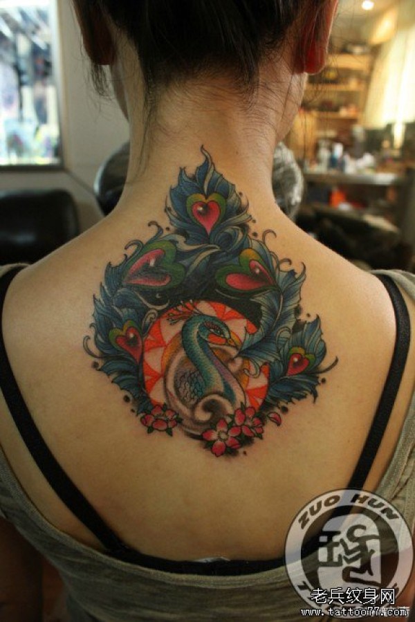 女生后背漂亮经典的孔雀纹身图案_女生纹身图案大全_纹身图吧