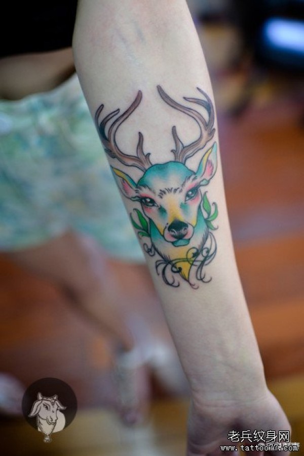 女生手臂经典流行的小鹿纹身图案_女生纹身图案大全_纹身图吧
