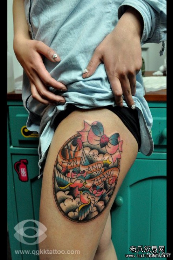 女生腿部潮流好看的小燕子纹身图案_女生纹身图案大全_纹身图吧
