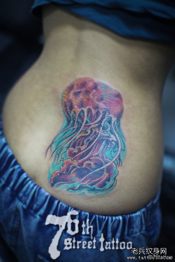 女生腰部精美潮流的彩色水母纹身图案_女生纹身图案大全_纹身图吧