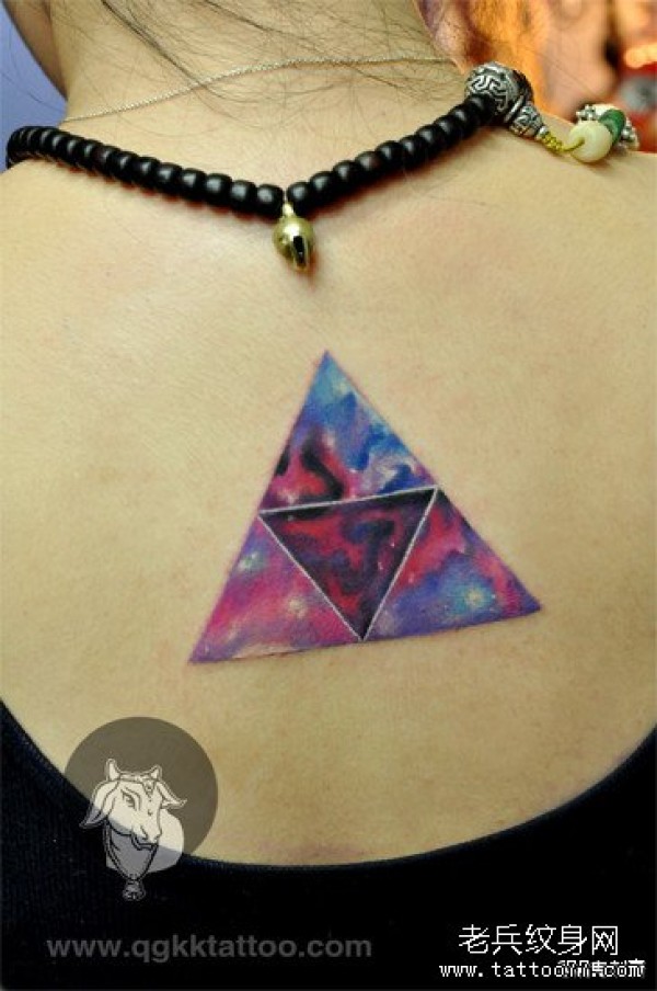 女生后背漂亮潮流的一款三角星空纹身图案_女生纹身图案大全_纹身图吧