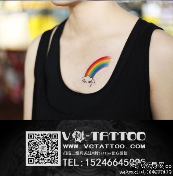 女生胸前小巧好看的彩虹纹身图案_女生纹身图案大全_纹身图吧