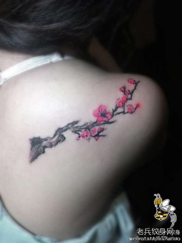 女生肩背潮流时尚的梅花纹身图案_女生纹身图案大全_纹身图吧