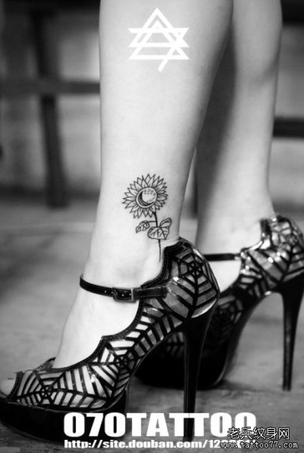 女生腿部小巧流行的向日葵花纹身图案_女生纹身图案大全_纹身图吧
