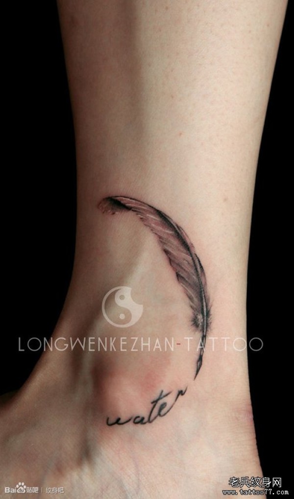 女生脚踝处小巧唯美的羽毛纹身图案_女生纹身图案大全_纹身图吧