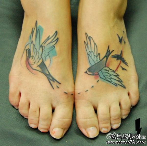 女生脚背潮流唯美的小燕子纹身图案_女生纹身图案大全_纹身图吧