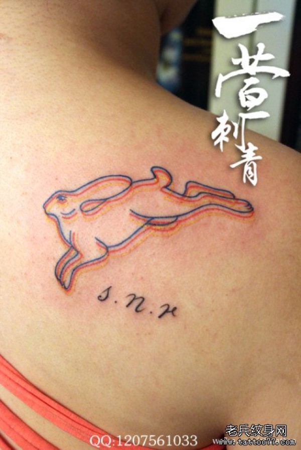 女生后肩背潮流时尚的幻影兔子纹身图案_女生纹身图案大全_纹身图吧