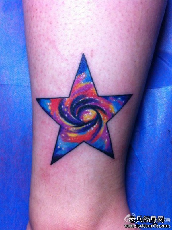 女生腿部潮流时尚的星空五角星纹身图案_女生纹身图案大全_纹身图吧