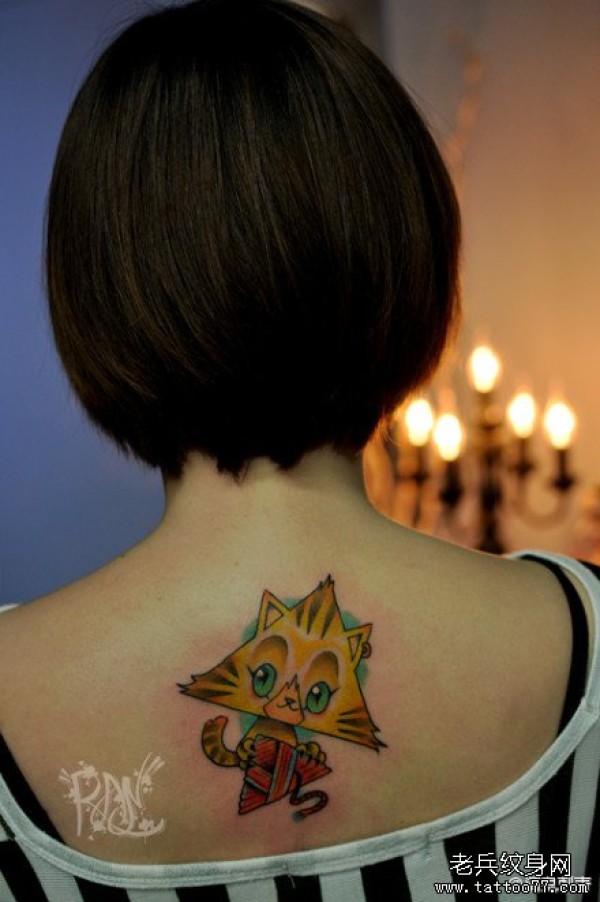 女生后背可爱的三角形的猫咪纹身图案_女生纹身图案大全_纹身图吧