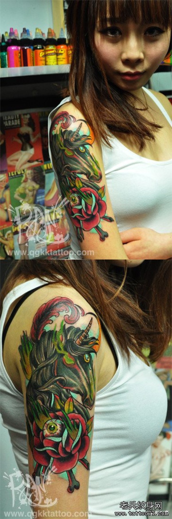 女生手臂潮流经典的独角兽纹身图案_女生纹身图案大全_纹身图吧