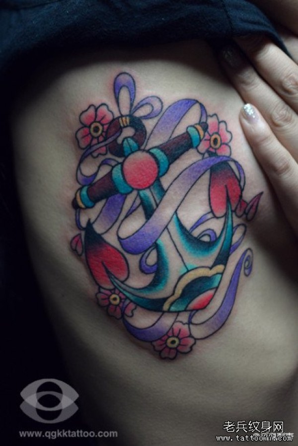 女生侧胸潮流精美的船锚纹身图案_女生纹身图案大全_纹身图吧