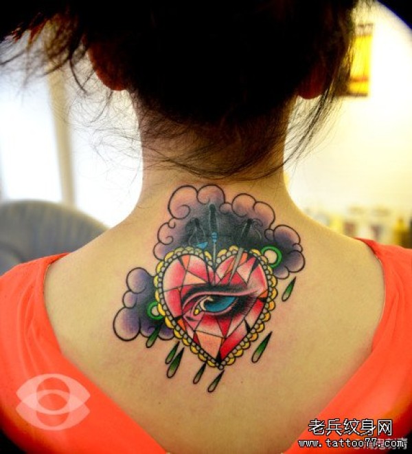 女生后颈潮流时尚的爱心宝石纹身图案_女生纹身图案大全_纹身图吧