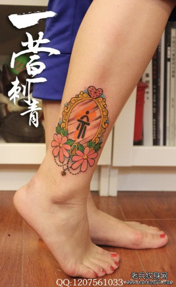 女生腿部小巧潮流的小镜子纹身图案_女生纹身图案大全_纹身图吧