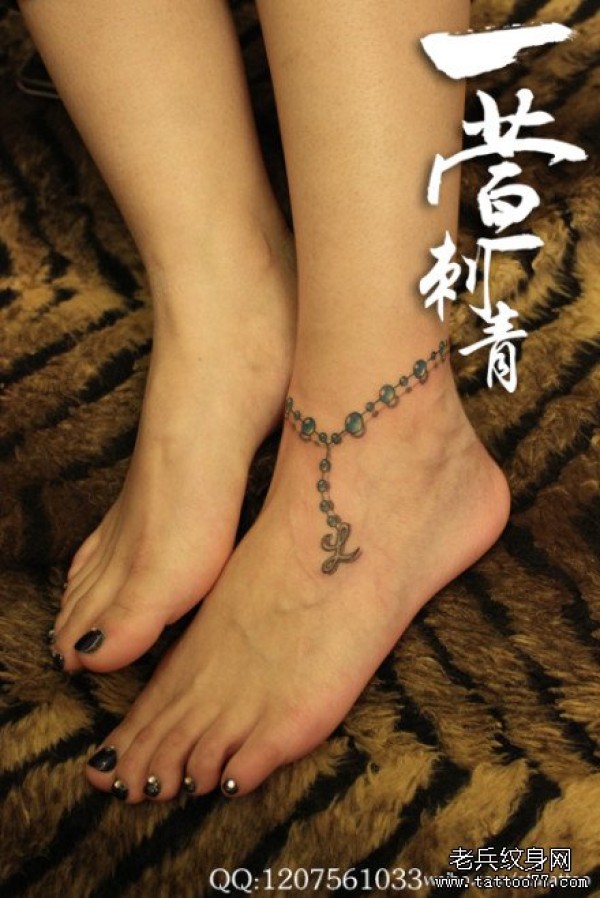 女生脚腕潮流唯美的脚链纹身图案_女生纹身图案大全_纹身图吧
