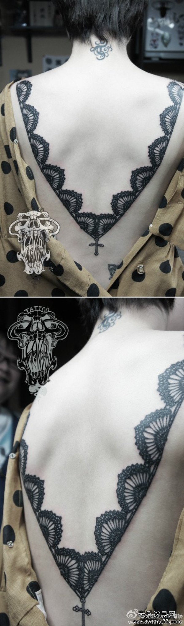 女生后背潮流经典的蕾丝纹身图案_女生纹身图案大全_纹身图吧