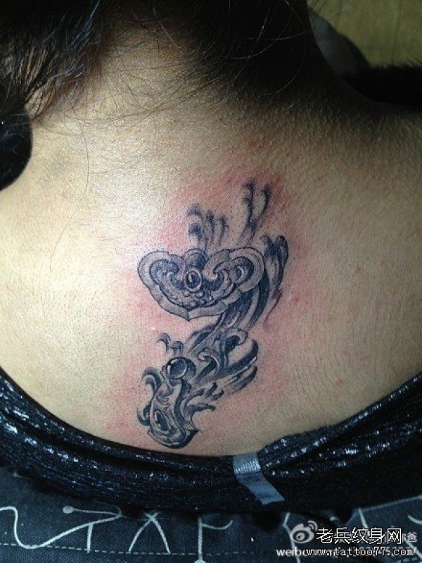 女生后肩背经典潮流的黑灰如意纹身图案_女生纹身图案大全_纹身图吧