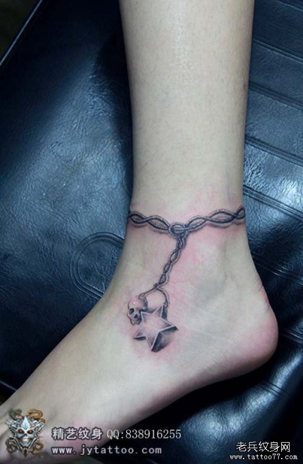女生脚腕漂亮时尚的五角星脚链纹身图案_女生纹身图案大全_纹身图吧