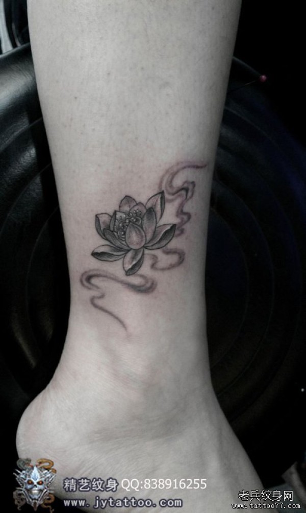 女生腿部唯美经典的黑灰莲花纹身图案_女生纹身图案大全_纹身图吧