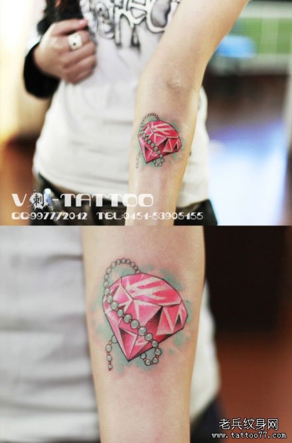 女生手臂小巧漂亮的粉色钻石纹身图案_女生纹身图案大全_纹身图吧