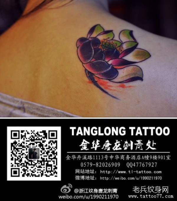 女生后肩背漂亮唯美的新传统莲花纹身图案_女生纹身图案大全_纹身图吧